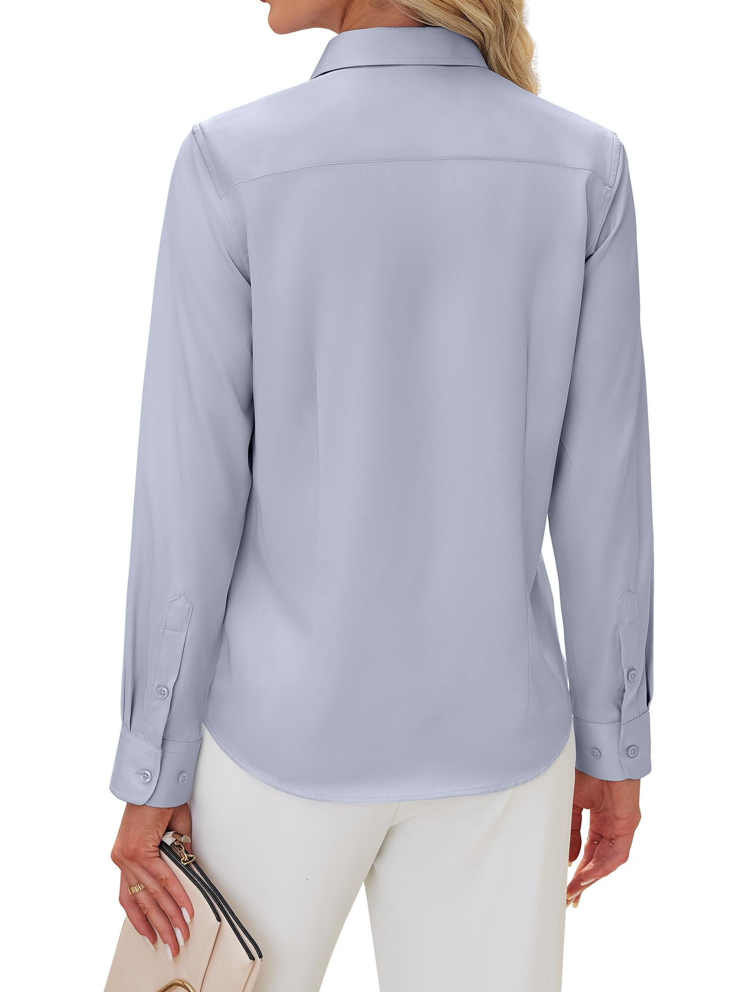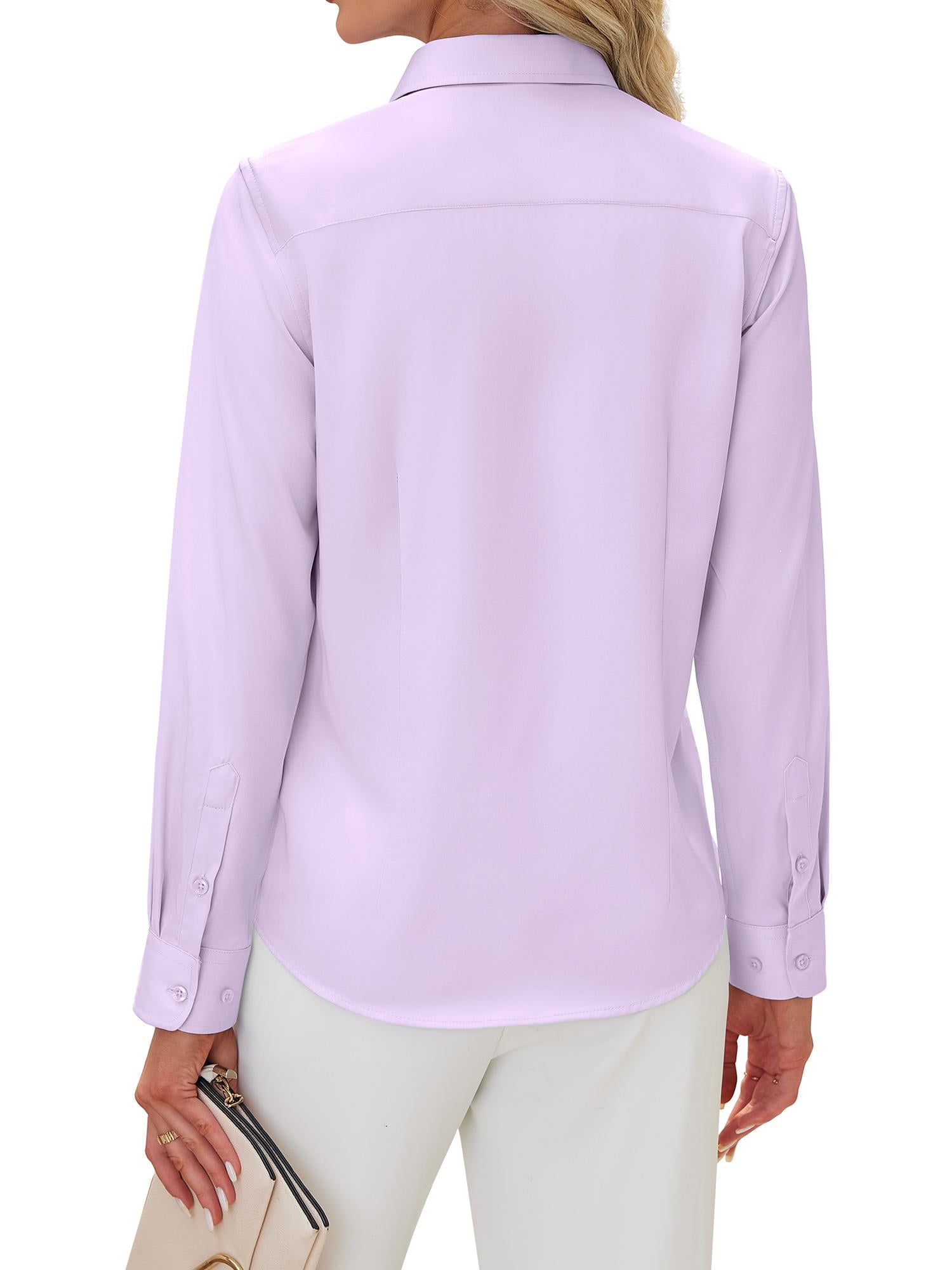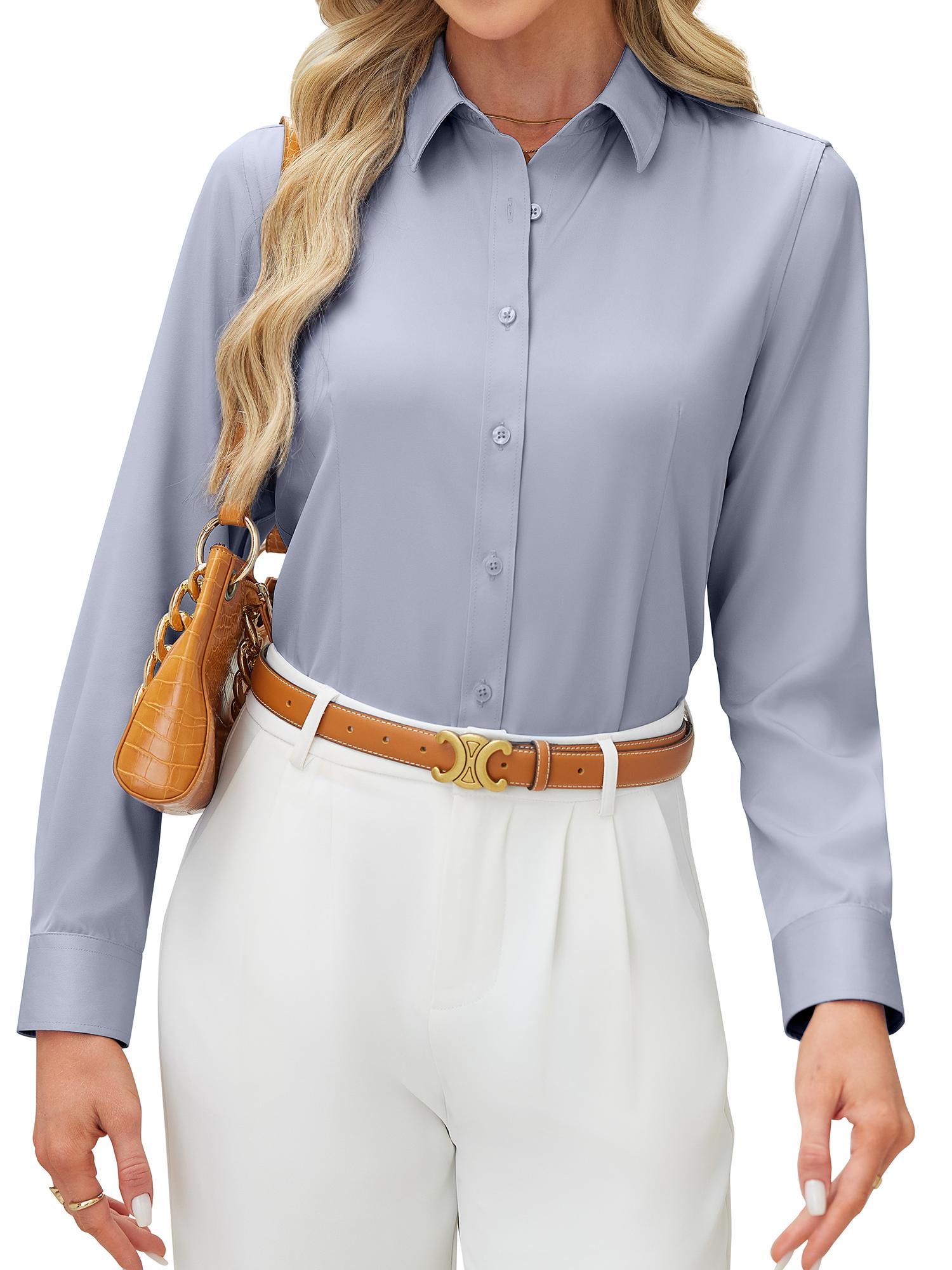Siliteelon Women's Long Sleeve Button Down Shirts Wrinkle-Free Office Work Blouse